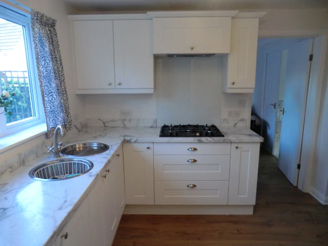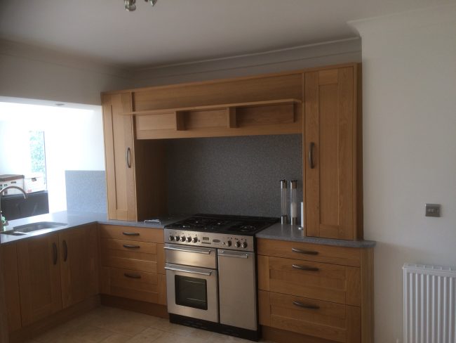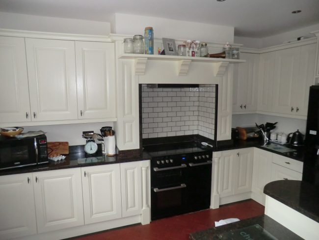 This kitchen has handleless high gloss 22 mm thick acrylic doors with Minerva solid surface work surfaces. CNC machined 18mm thick cabinets colour matched to doors. Doors & drawers are soft closing.