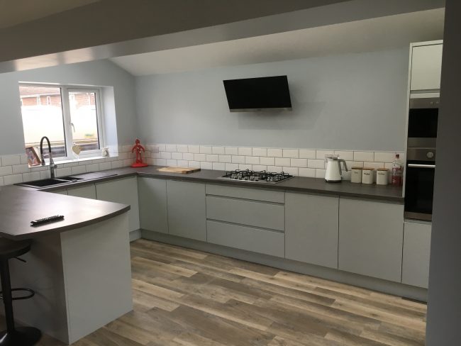 Handleless high gloss kitchen in light grey, Newbold, Chesterfield Copy